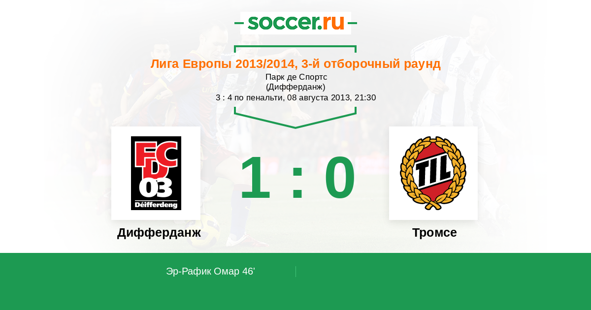 Протокол матча Дифферданж против Тромсе