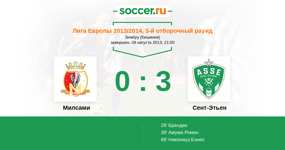 Протокол матча Милсами против Сент-Этьен
