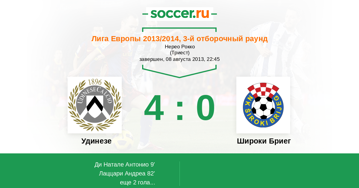 Протокол матча Удинезе против Широки Бриег