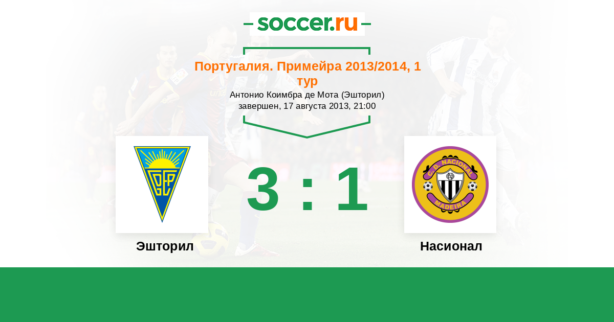 Португалия. Примейра 14.09.2014 Эшторил Логотип футбольный клуб Эшторил 2:1 Логотип футбольный клуб Насионал (Фуншал) Насионал