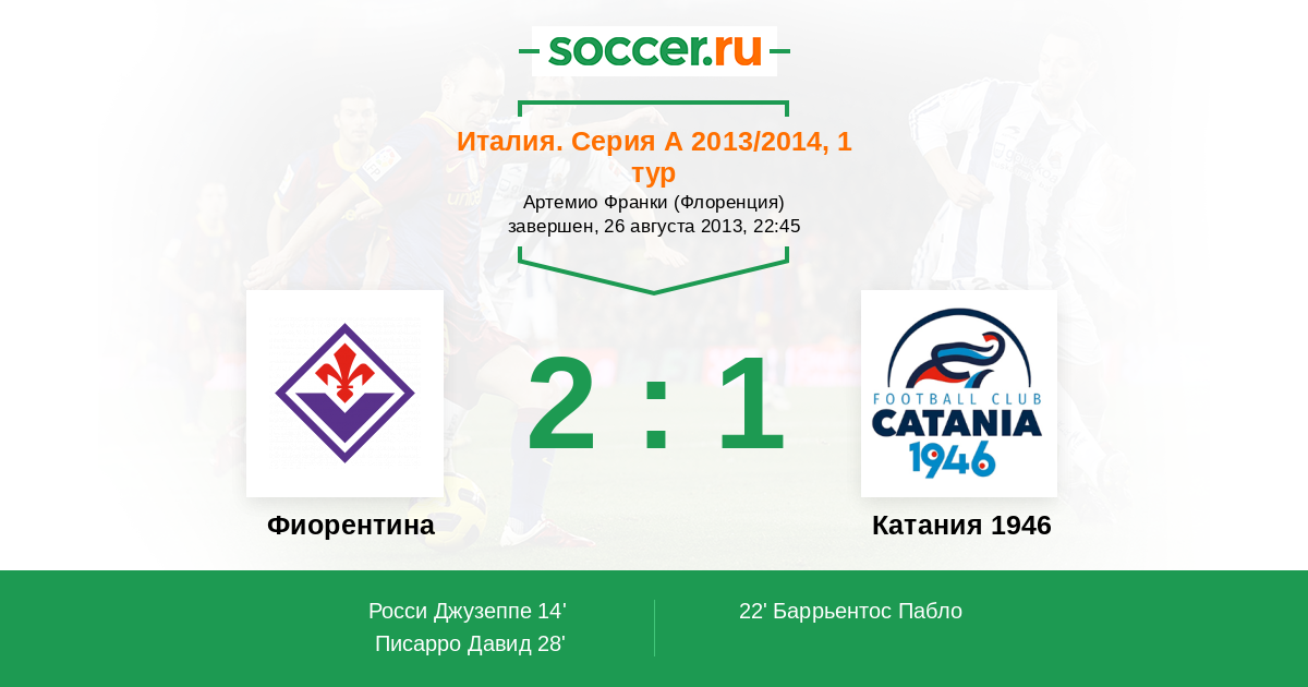 Протокол матча Фиорентина против Катания 1946