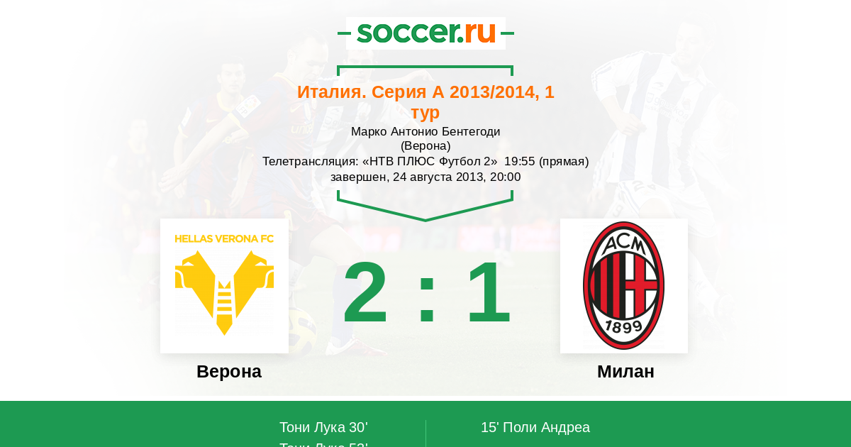 15' (0:1) Поли Андреа (16) (Балотелли Марио (45))