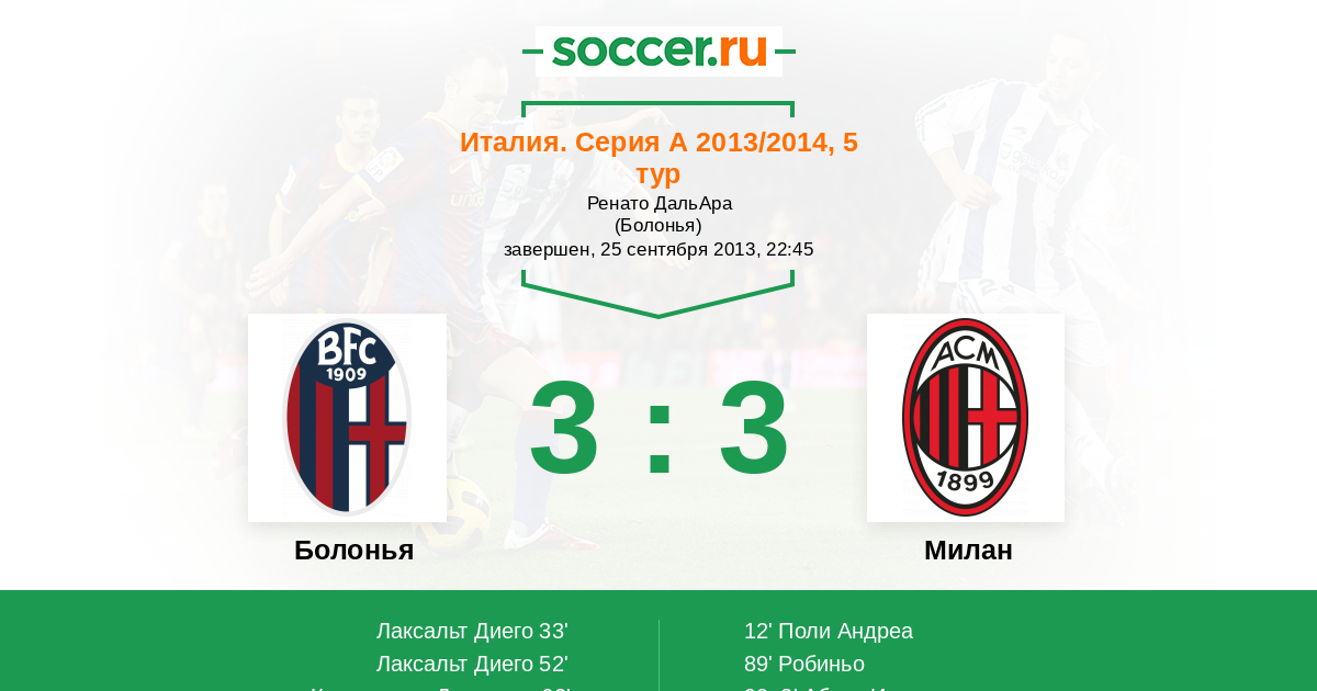 Гол90+2' (3:3) Абате Иньяцио (20) (Робиньо (7))