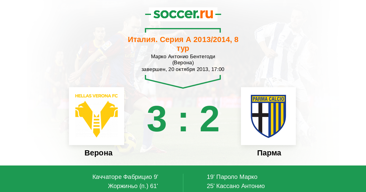 Протокол матча Верона против Парма