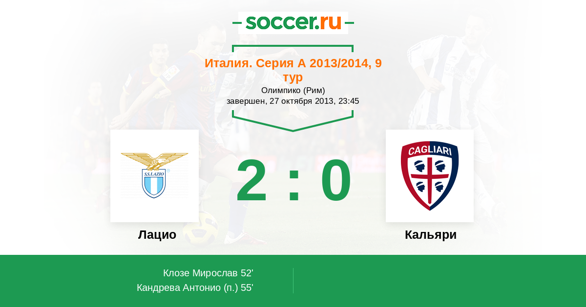 Протокол матча Лацио против Кальяри