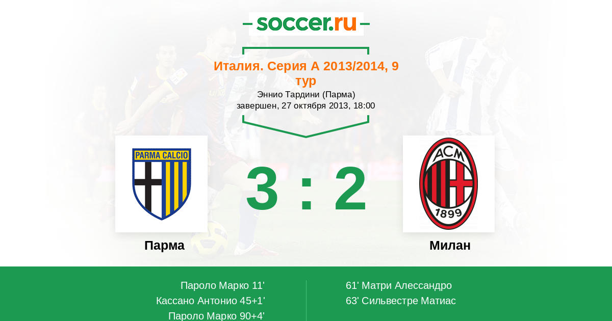45+1' (2:0) Кассано Антонио (99) (Пароло Марко (16))