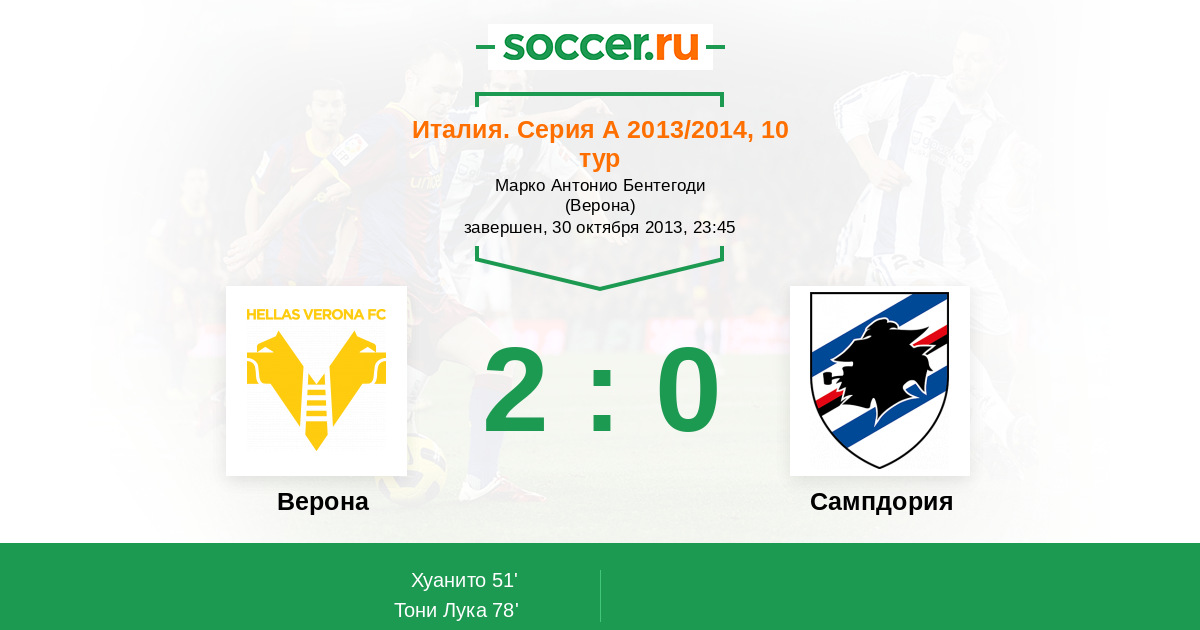 Протокол матча Верона против Сампдория