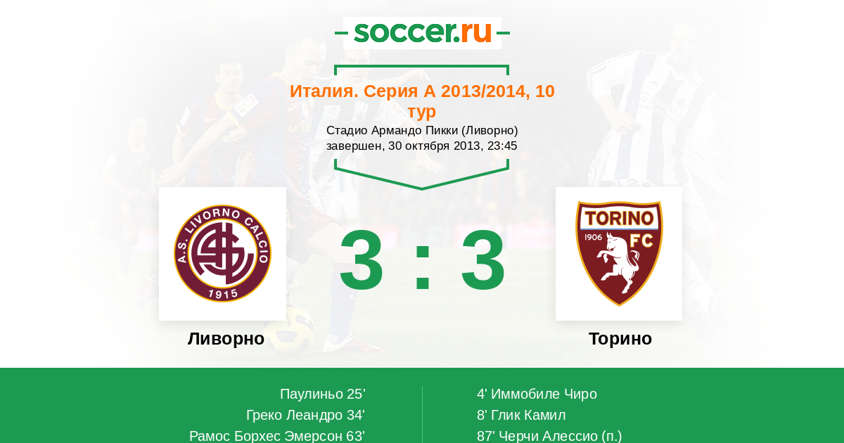 Протокол матча Ливорно против Торино