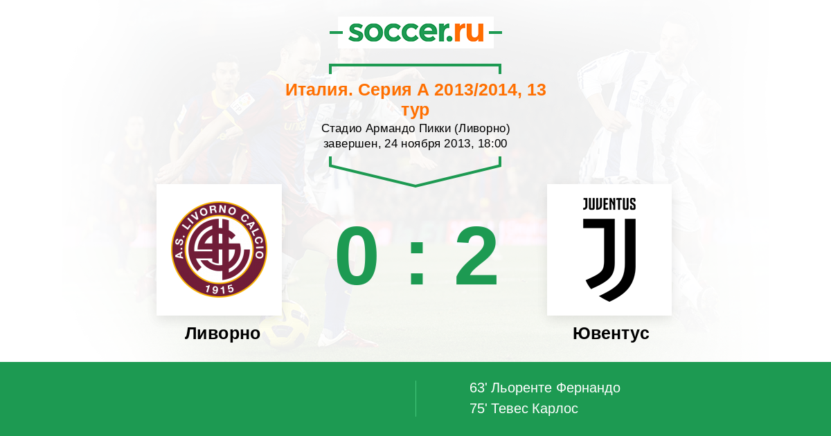Протокол матча Ливорно против Ювентус