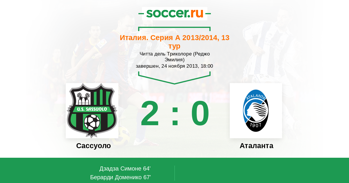 Протокол матча Сассуоло против Аталанта