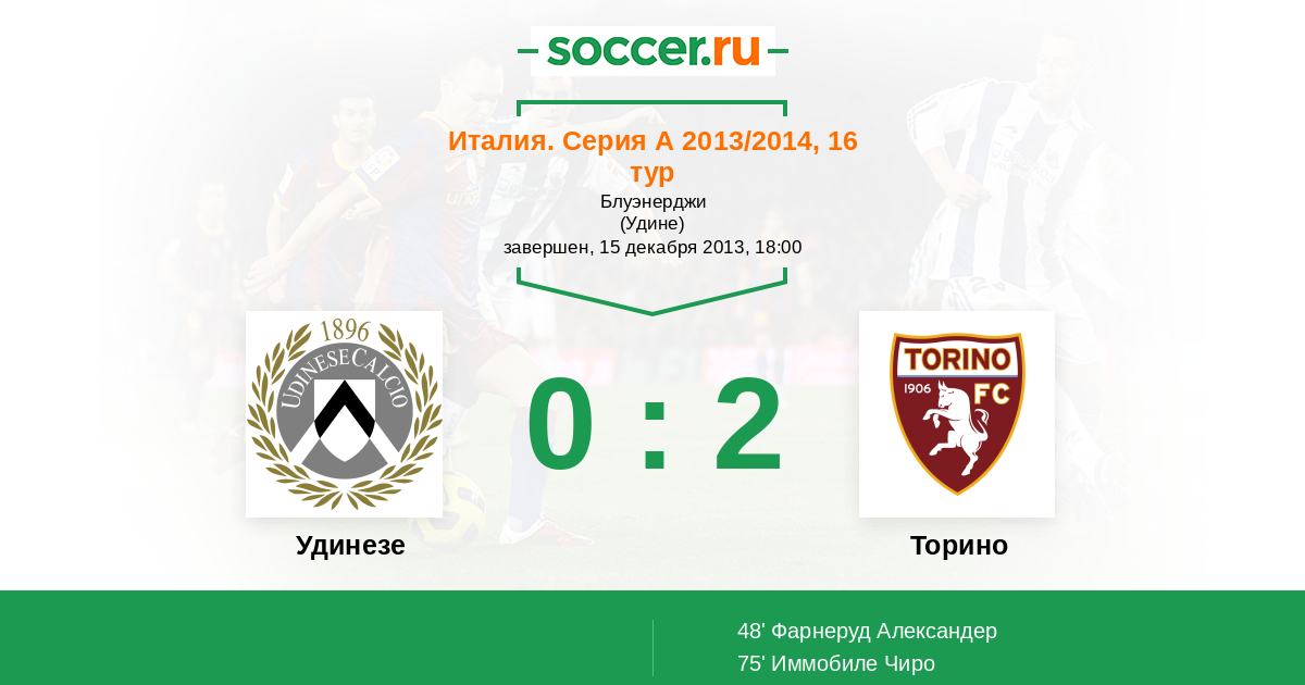 Протокол матча Удинезе против Торино