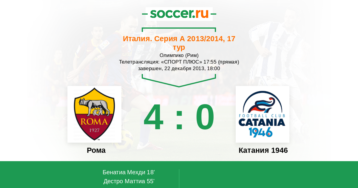 Протокол матча Рома против Катания 1946