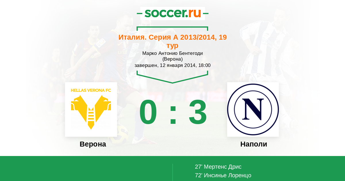 Протокол матча Верона против Наполи