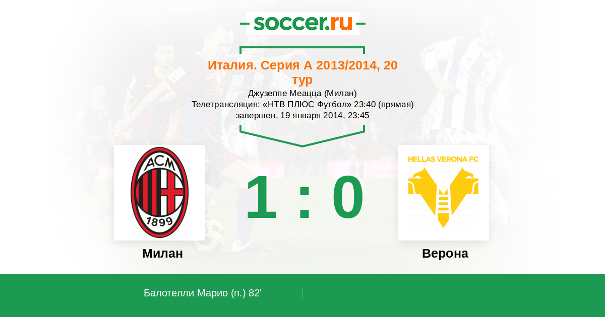 Протокол матча Милан против Верона