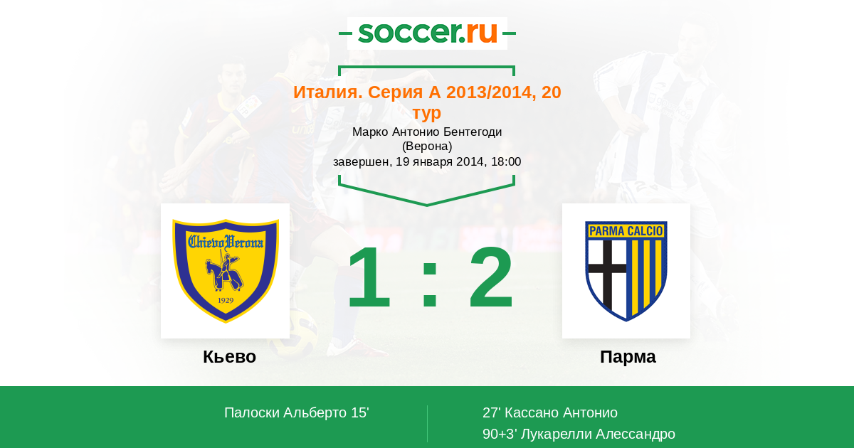 27' (1:1) Кассано Антонио (99) (Пароло Марко (16))