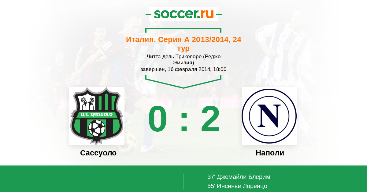 55' (0:2) Инсинье Лоренцо (24) (Гамшик Марек (17))