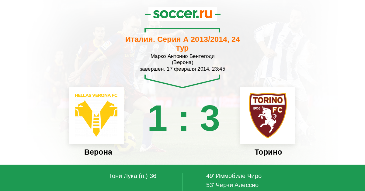 Протокол матча Верона против Торино