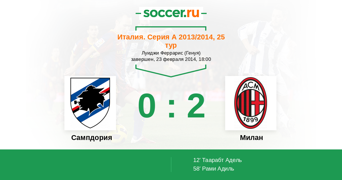 Протокол матча Сампдория против Милан