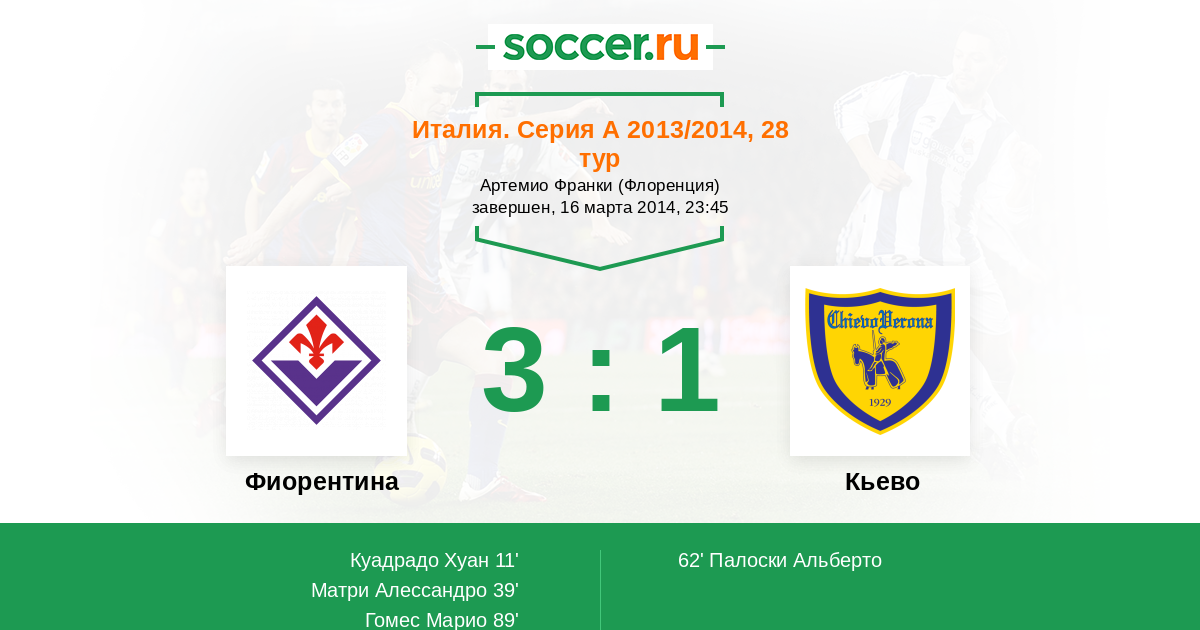 Протокол матча Фиорентина против Кьево