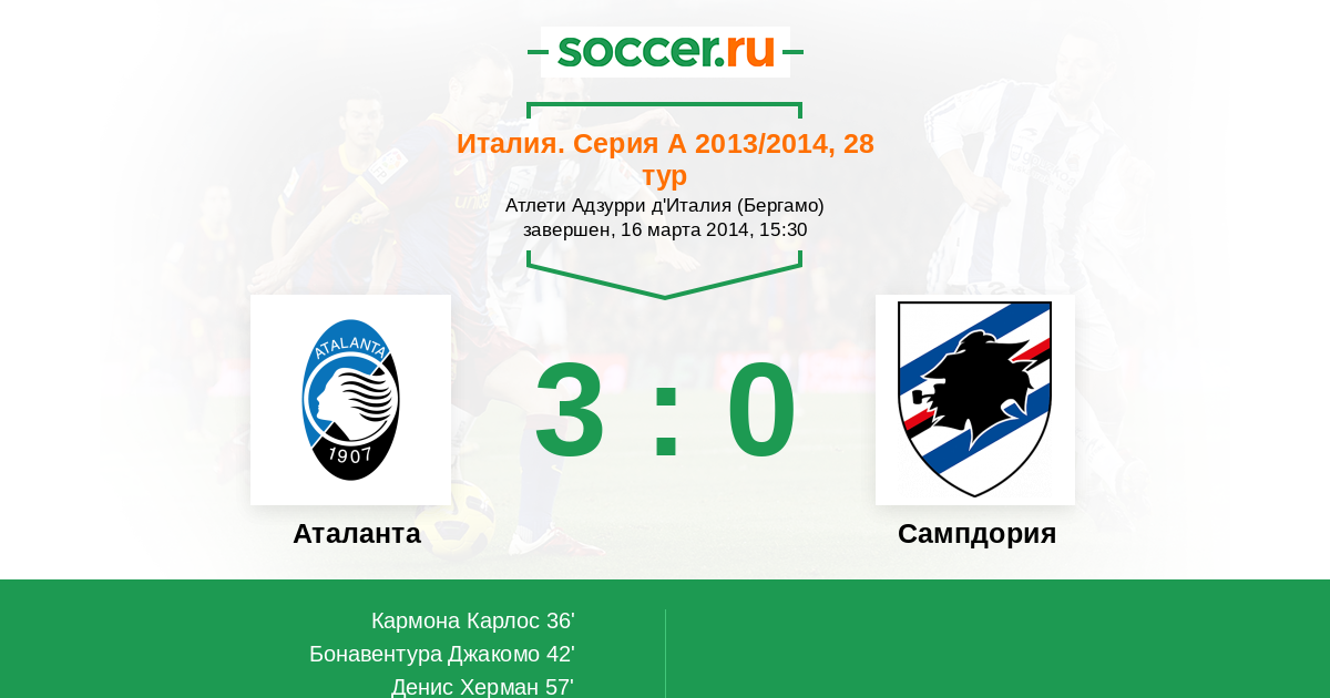 Протокол матча Аталанта против Сампдория