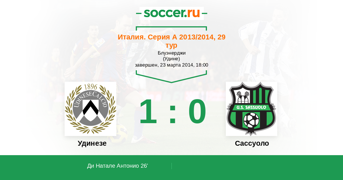 26' (1:0) Ди Натале Антонио (10)