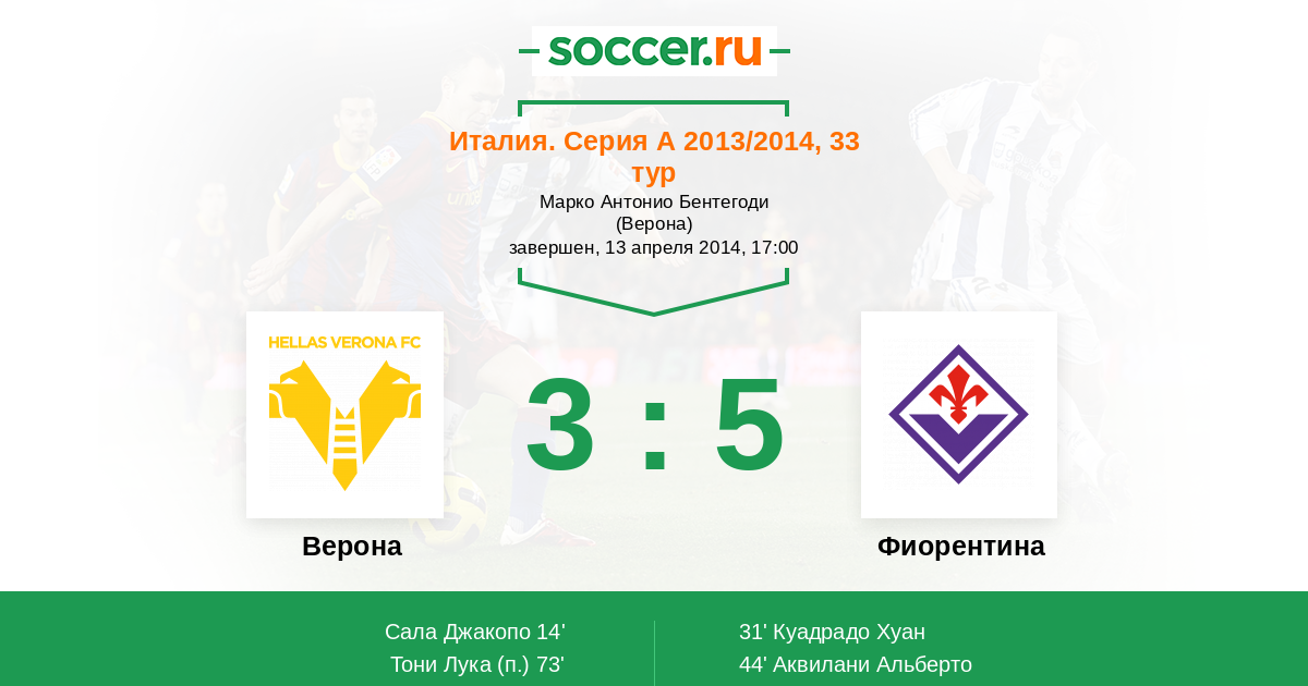 Протокол матча Верона против Фиорентина