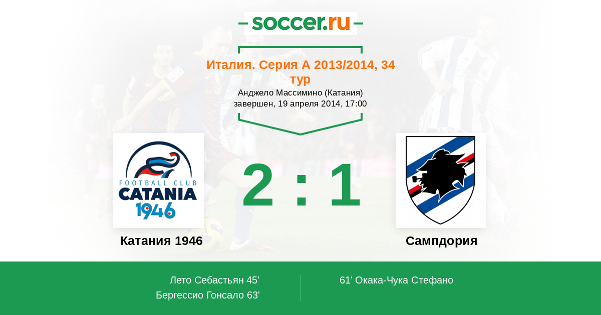 Протокол матча Катания 1946 против Сампдория