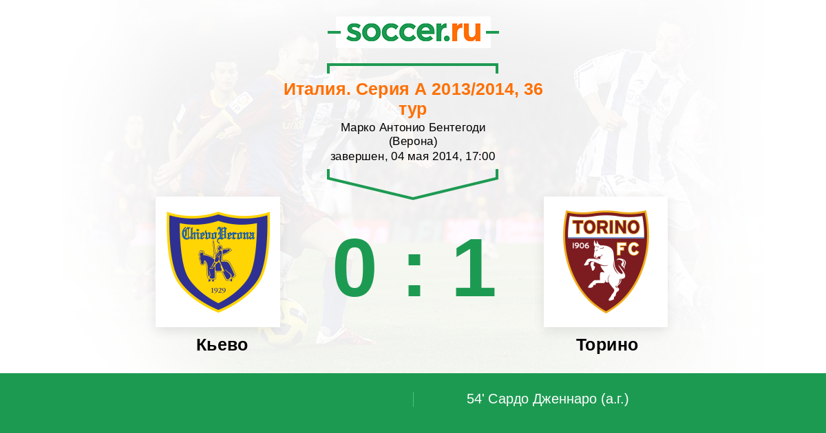 54' (0:1) Автогол Сардо Дженнаро (17)