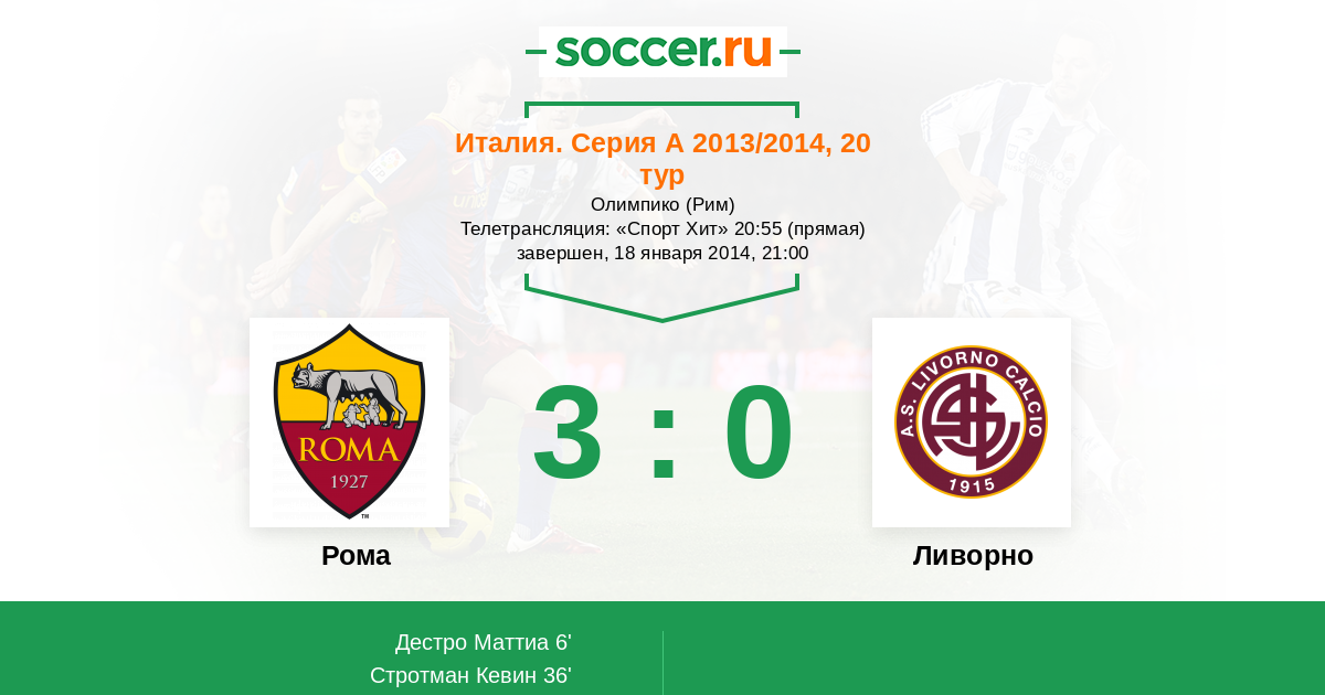 Протокол матча Рома против Ливорно