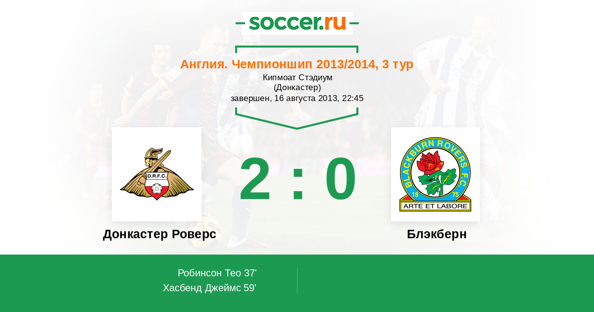 Протокол матча Донкастер Роверс против Блэкберн