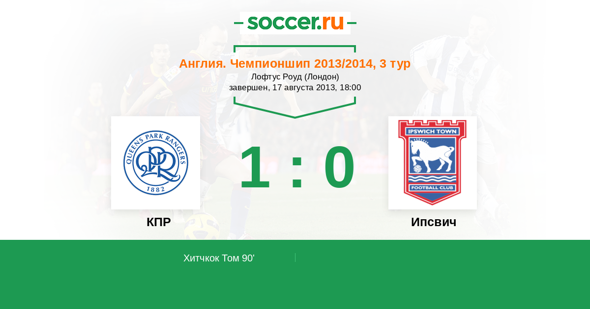 Протокол матча КПР против Ипсвич