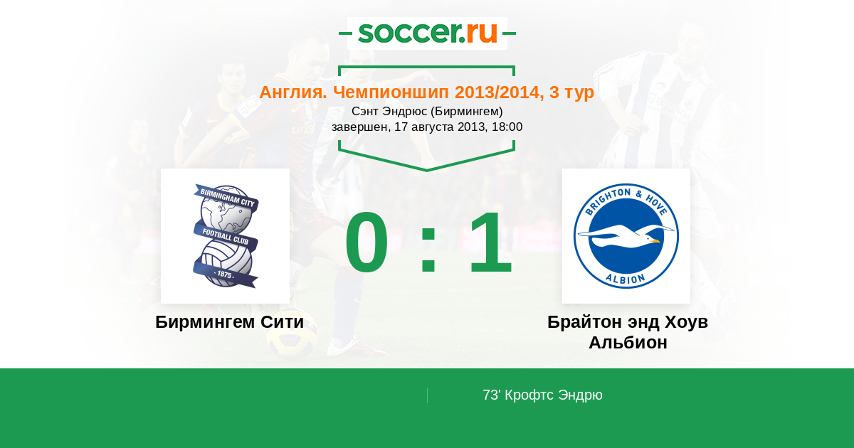 Протокол матча Бирмингем Сити против Брайтон энд Хоув Альбион