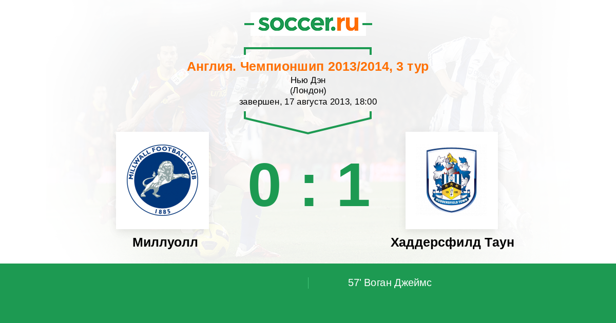Протокол матча Миллуолл против Хаддерсфилд Таун