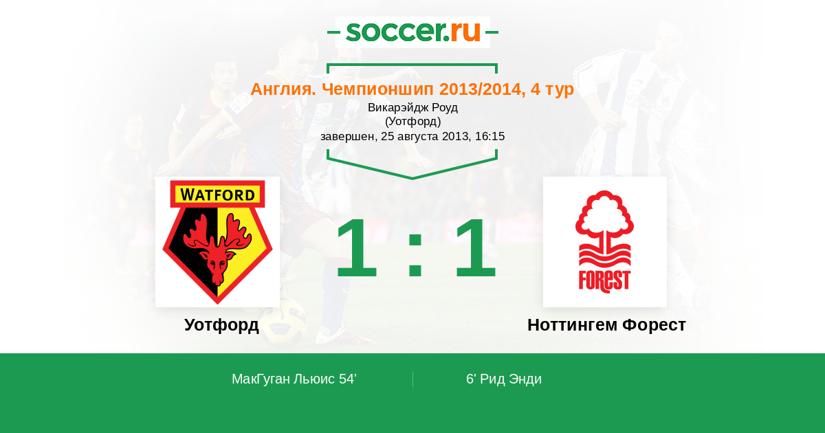Протокол матча Уотфорд против Ноттингем Форест