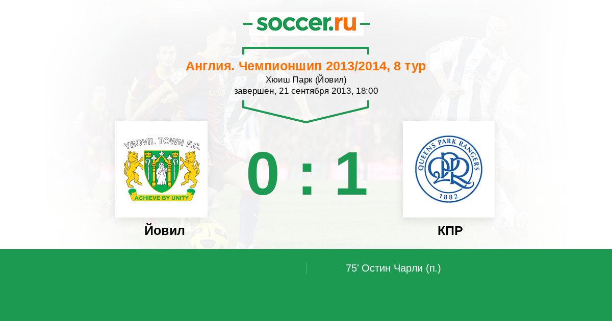 Протокол матча Йовил против КПР