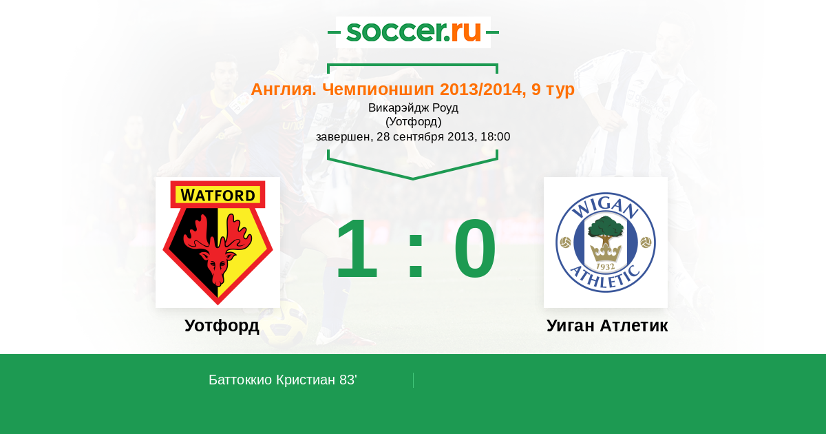 Протокол матча Уотфорд против Уиган Атлетик