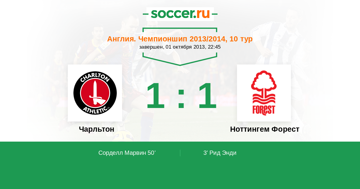 Протокол матча Чарльтон против Ноттингем Форест