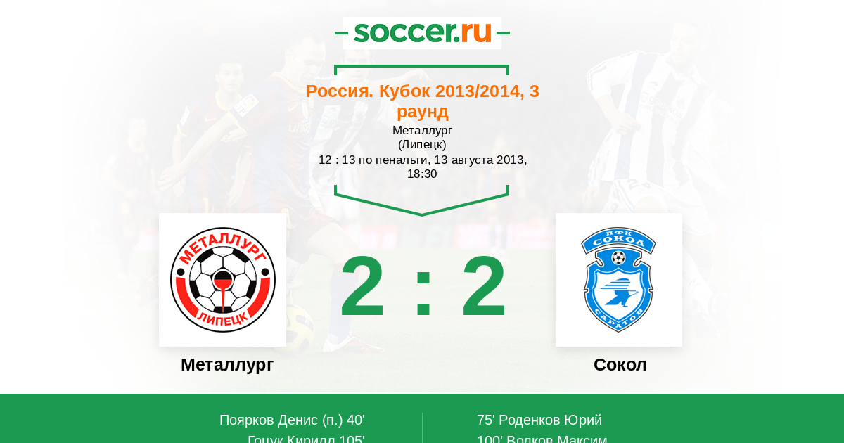 Протокол матча Металлург против Сокол