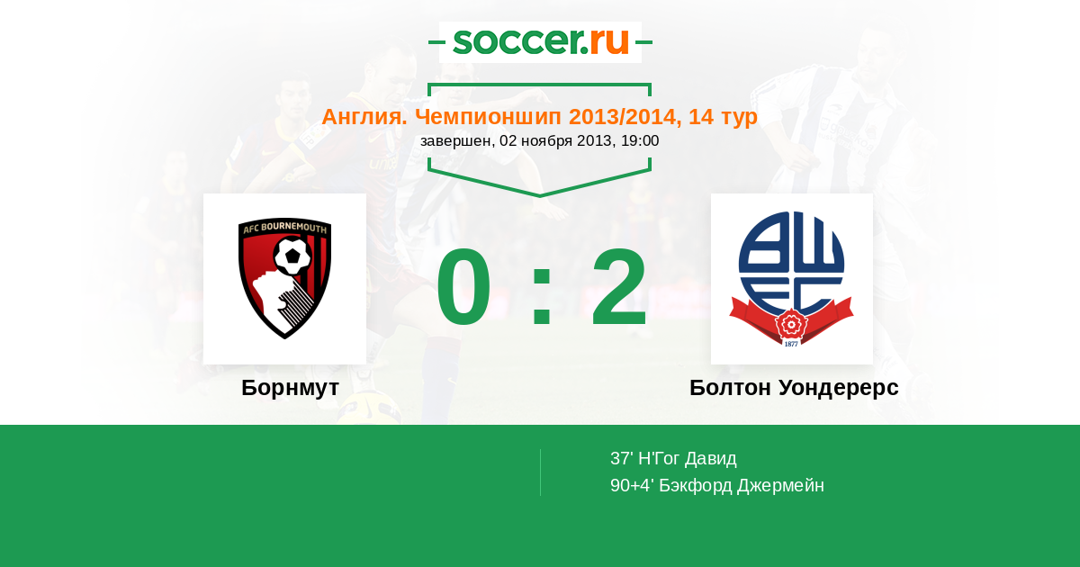 Протокол матча Борнмут против Болтон Уондерерс