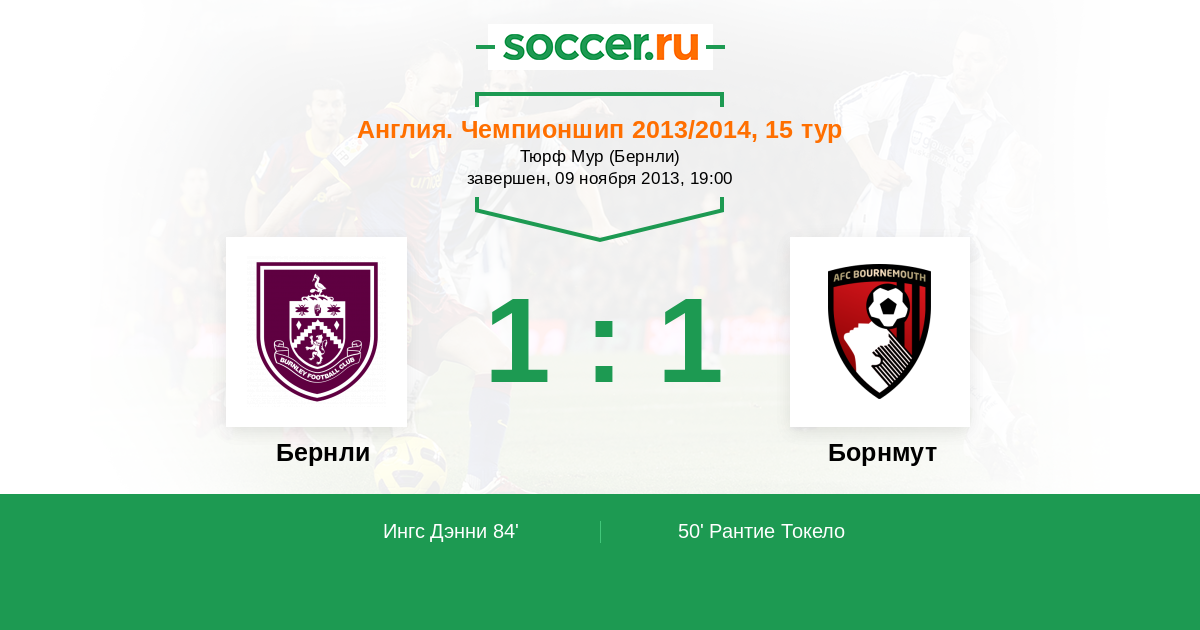 Протокол матча Бернли против Борнмут
