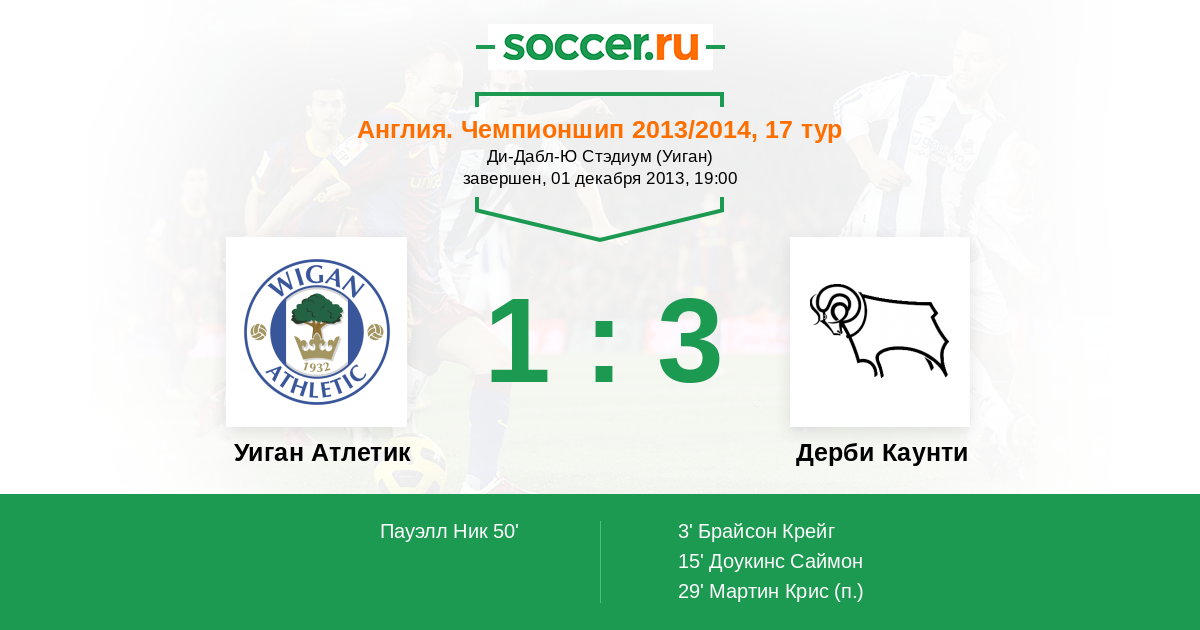 Протокол матча Уиган Атлетик против Дерби Каунти