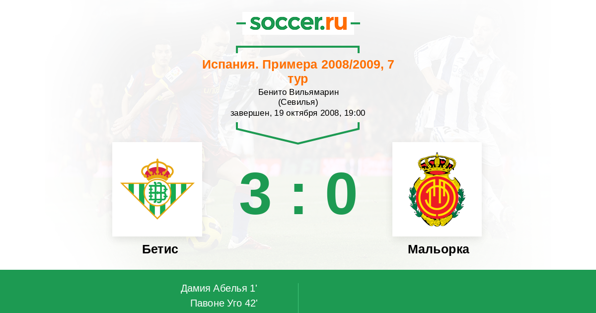 Протокол матча Бетис против Мальорка