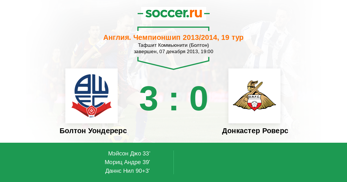 Протокол матча Болтон Уондерерс против Донкастер Роверс