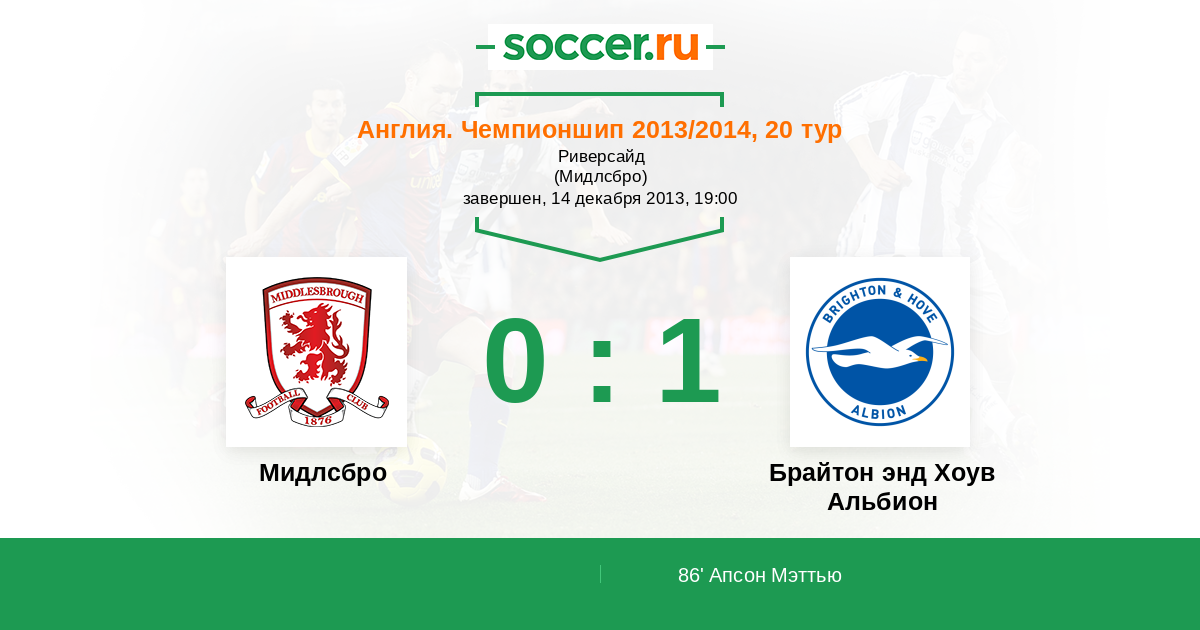 Протокол матча Мидлсбро против Брайтон энд Хоув Альбион