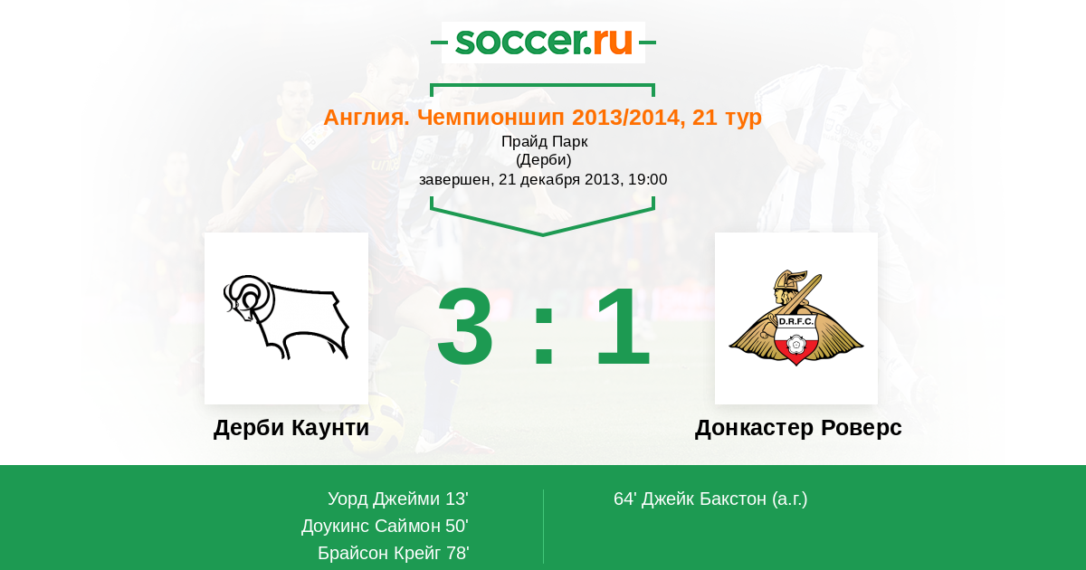 Протокол матча Дерби Каунти против Донкастер Роверс
