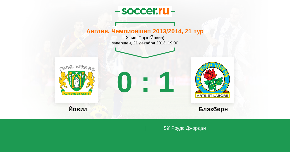 Протокол матча Йовил против Блэкберн