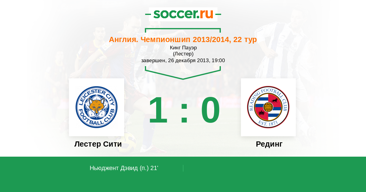 Протокол матча Лестер Сити против Рединг