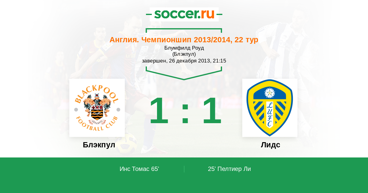 Протокол матча Блэкпул против Лидс