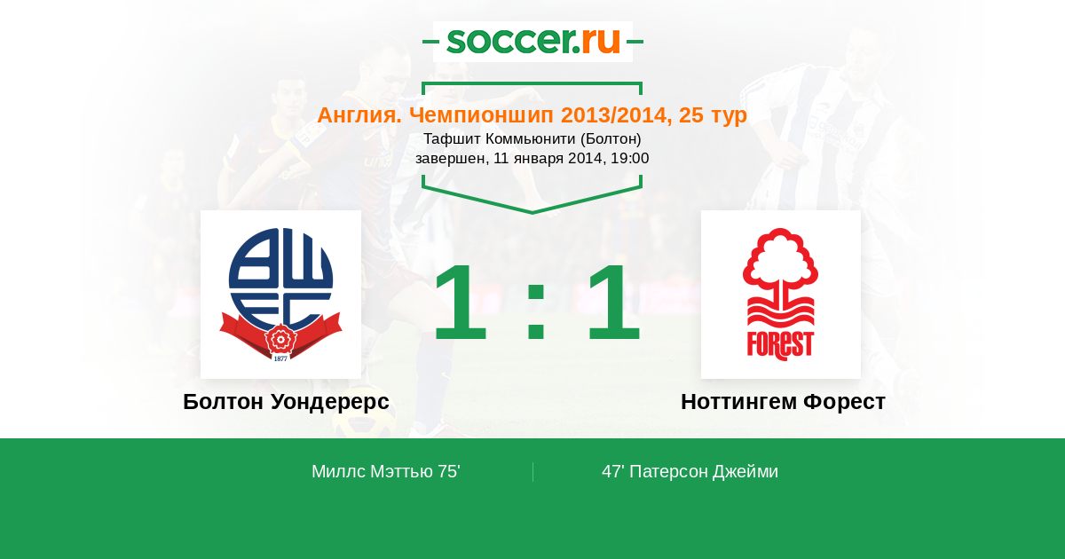Протокол матча Болтон Уондерерс против Ноттингем Форест