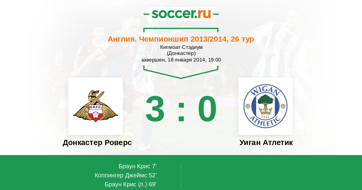 Протокол матча Донкастер Роверс против Уиган Атлетик